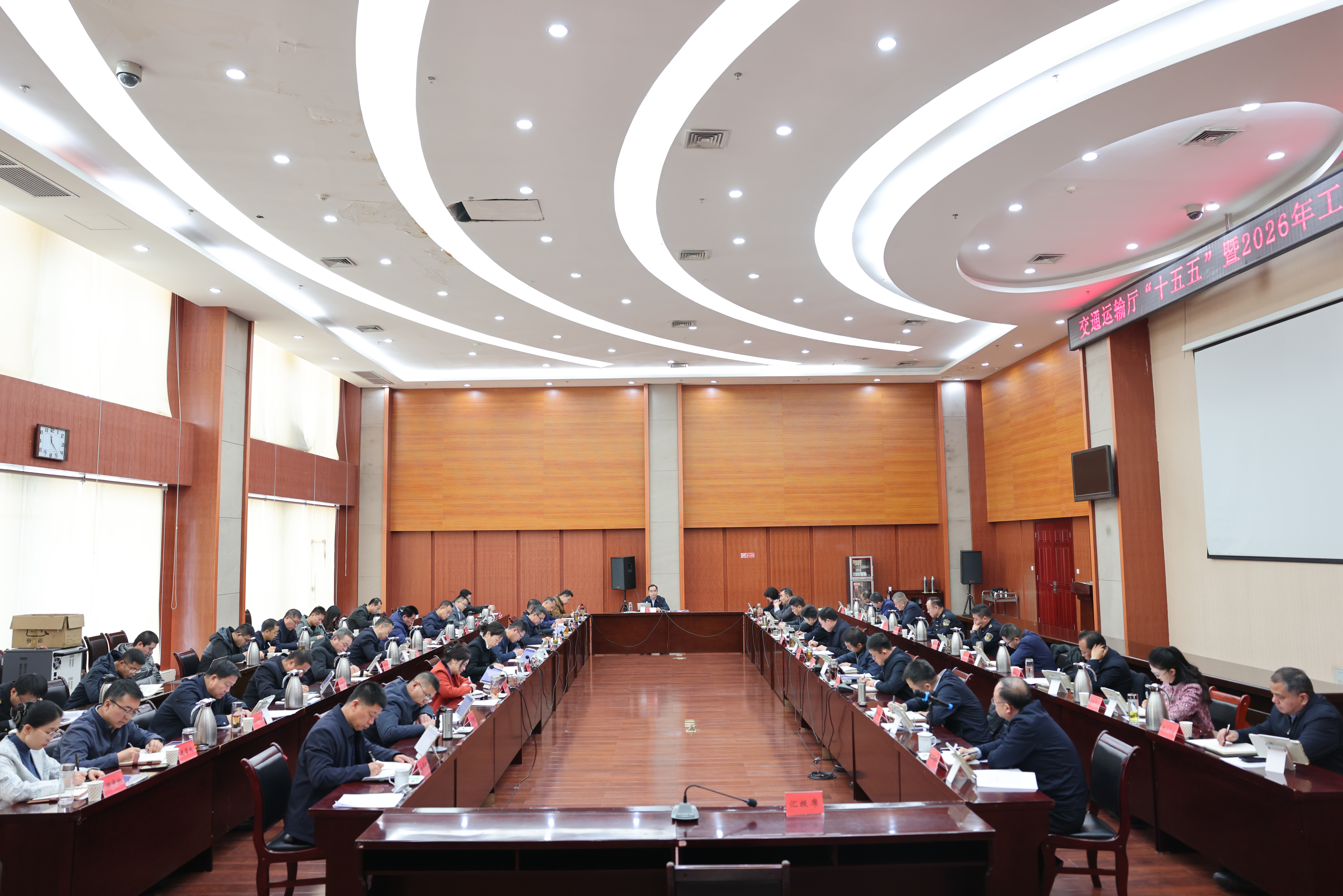 2026年1月5日上午,自治区交通运输厅召开“十五五”暨2026年工作谋划会,深入学习贯彻党的二十届四中全会、中央经济工作会议及自治区党委十三届十一次、十二次全会精神。会议听取厅机关各处室、直属各单位相关工作思路汇报,各分管厅领导结合分管领域实际作出具体安排。厅主要领导主持会议并作总体部署。